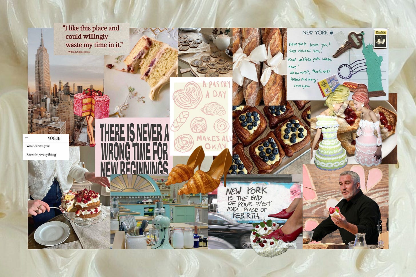 Something about the homey bakes, sing-songey accents from across my home county, and the hilarious out-takes, over-bakes and soggy bottoms (iykyk) calmed me and provided a safe, quiet island for me to transport to every night. I have never quite escaped reality in this way since. I don’t even know if it’s entirely healthy- to become so dependent on a TV show, but like ice to a burn, you took the temporary (but rather all-consuming) ouch, out of reality. I’m trying to understand why this feels important, four years down the track. I have so many TV shows that I love but loving is easyyyy- my friendship with this particular TV show is more complex. Perhaps, in a world of infinitely new beginnings (how exciting), there is something rather essential about certainty. Or to state the inverse, having nothing certain, and challenging/adapting/restructuring so many things in your life (job, friendships, apartment, etc) actually inhibits the net good. It can be really flipping overwhelming!